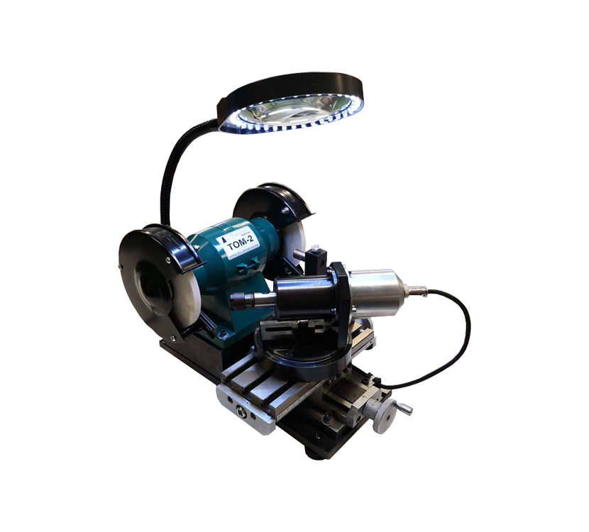 Станки модели TOM-2 (CP-230) предназначены для заточки тел вращений (сверл, фрез, кернов , притиров и др.) с углом в диапазоне от 82 до 124 градусов с зажимом их в цанговом патроне. Также устройство предназначено для заточки сверл , фрез, кернов, стамесок, ножей, долот и другого режущего и слесарного инструмента ручным способом. В качестве рабочего инструмента в заточном станке используются шлифовальные (заточные) круги.